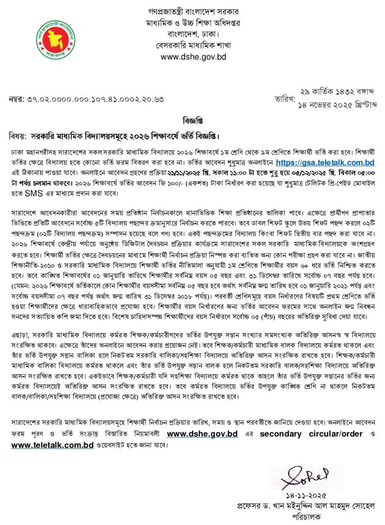Parents are encouraged to stay informed and complete the admission formalities promptly after the results are announced. For further updates and details, visit the official portal at gsa.teletalk.com.bd.